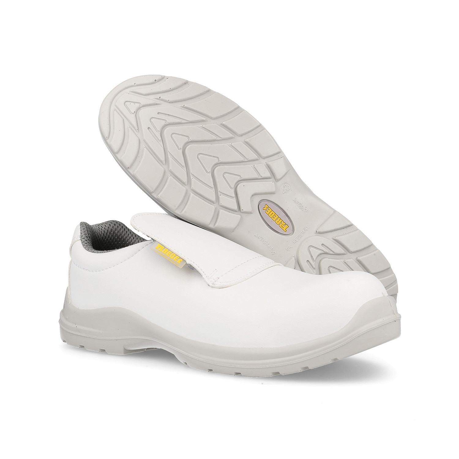 CHAUSSURES DE SECURITE ARZAK SOFT Chaussures blanches Semelle polyuréthane monodensité, confort, résistance à l’abrasion et antidérapante SRC Résistance électrique antistatique Coupe légère en microfibre, lavable en machine à laver Doublure High-Dry, embout composite, p
